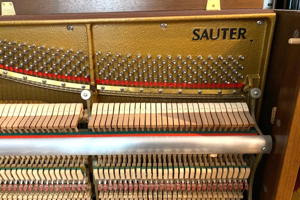 Sauter Konzert Klavier Modell 130 – Besonders hochwertige Verarbeitung durch agraffengeführte Saiten und außergewöhnliche Klangeigeneigenschaften durch einen größeren Resonanzboden zeichnet dieses Klavier aus. Ausgestattet mit der einzigartigen, patentierten Sauter R2-Mechanik, die ein deutlich besseres Repetieren ermöglicht, das sonst nur bei Flügeln möglich ist.
