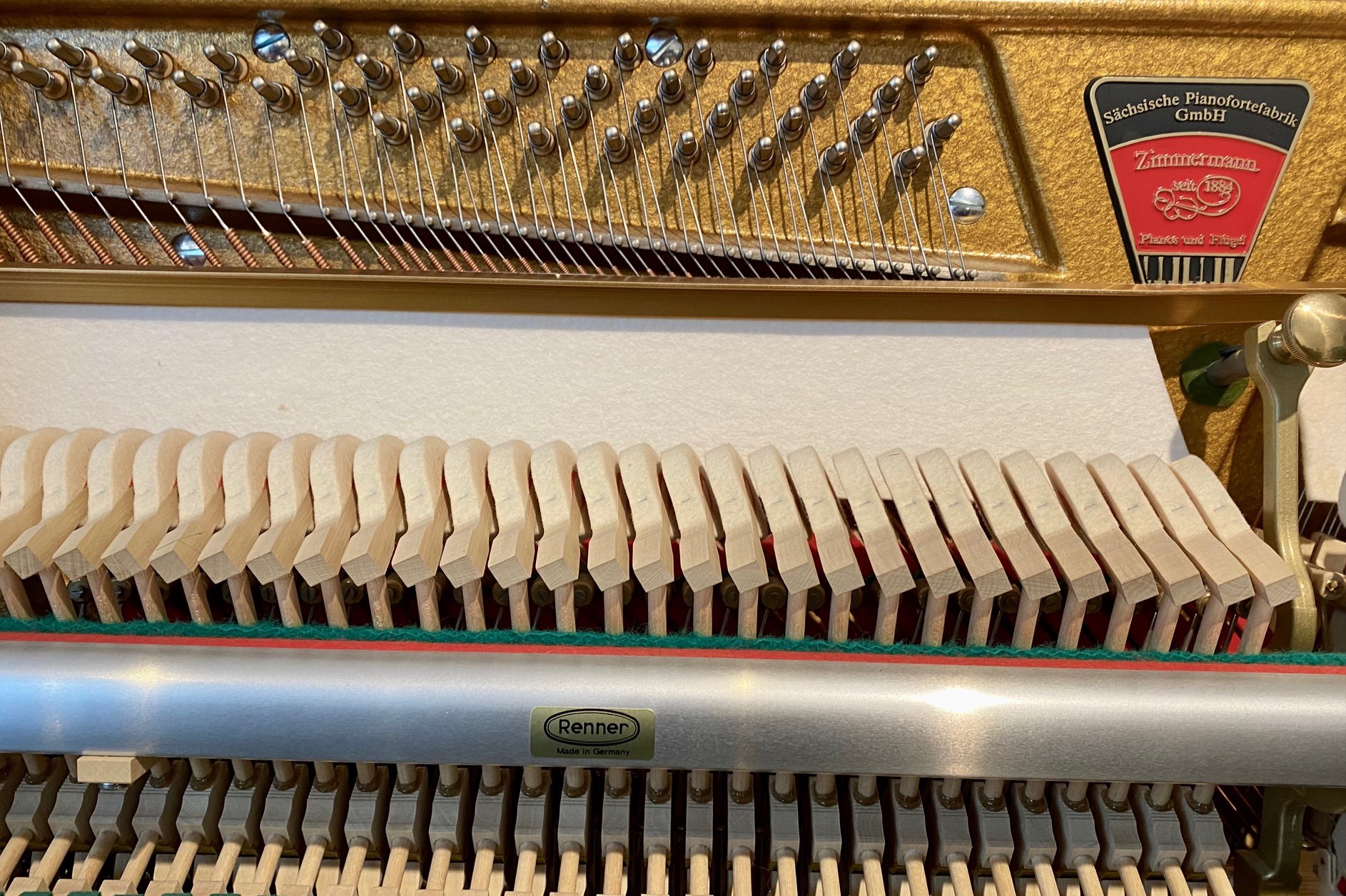 Made in Germany! Dieses gebrauchtes Zimmermann Klavier Modell 120, by C.Bechstein, wurde noch in Seifhennersdorf gebaut und mit der deutschen Premium-Renner-Mechanik ausgestattet. Es eigent sich hervorragend für Einsteiger und Fortgeschrittene. Sehr angenehm leichte Spielart und obertonreicher Klang. Durch unsere sorgfältige, technische Ausarbeitung und Klangoptimierung, wird Ihnen dieses Instrument noch viele Jahre Freude bereiten.