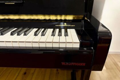 W. Hoffmann Klavier, Vision 112 in Schwarz-Hochglanz. Qualität aus dem Hause Bechstein. Dieses exquisite W. Hoffmann Klavier profitiert von der herausragenden Expertise und Handwerkskunst aus dem Hause Bechstein und überzeugt nicht nur optisch sondern auch durch seine inneren Werte. Die präzise Ansprache ermöglicht ein fein differenziertes Spiel und lässt jede Melodie lebendig werden. Die detailreiche Verarbeitung garantiert Langlebigkeit und Stabilität. Jedes Detail zeugt von der Sorgfalt und Präzision, die man von einem Instrument aus dem Hause Bechstein erwarten darf. Ein Qualitätsklavier für die ganze Familie und eine noch preiswertere Alternative zum Neuinstrument!